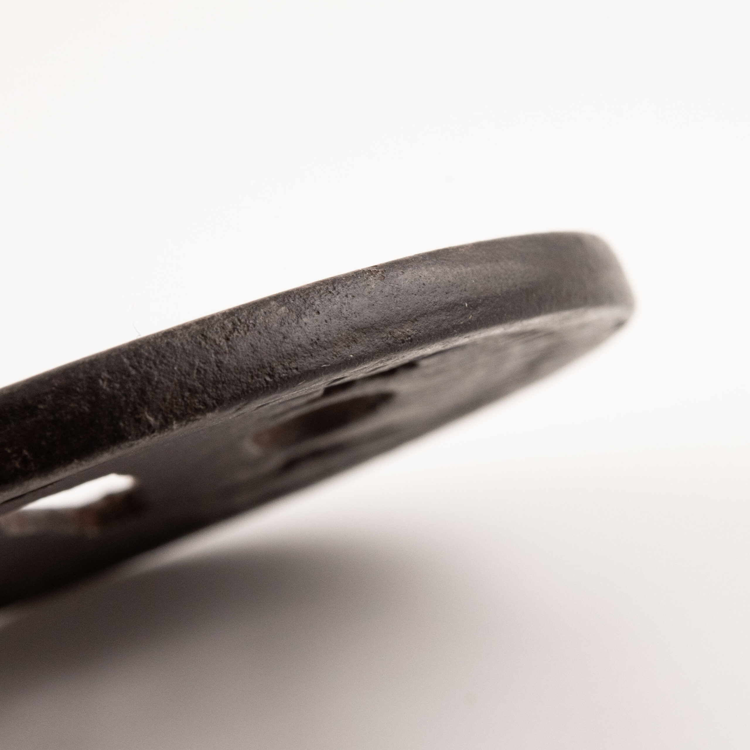 The Tsuba had been treated by perfectly controlled Yakite which one can see on the surface encircled by the strong rim. This kind of sandy looking Yakite surface is typical for many of the older Yagyu Tsuba.